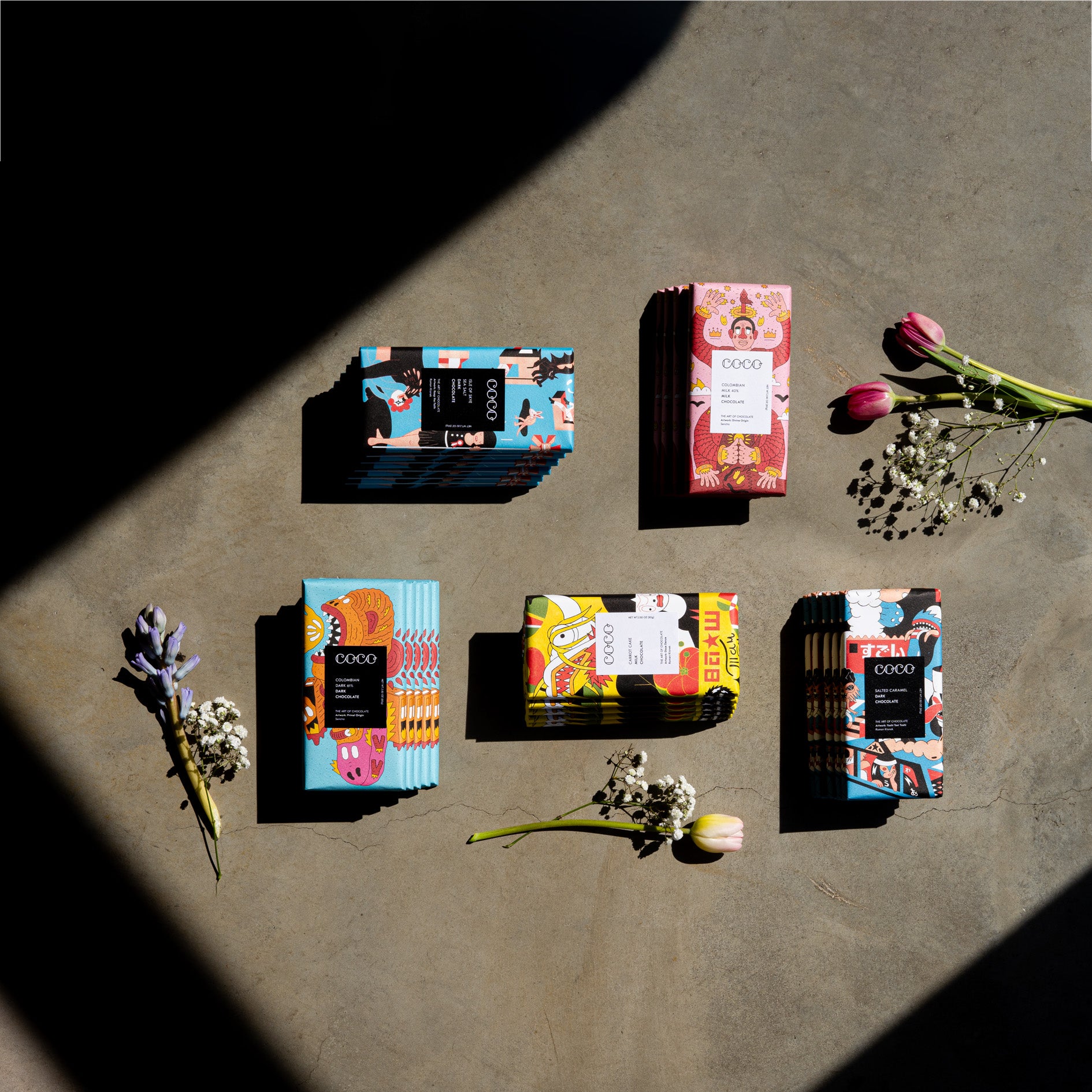COCO collaborates with independent artists to wrap chocolate in original, thought-provoking artwork. It’s indulgence that delights all the senses, making every bite feel like a gift worth sharing.